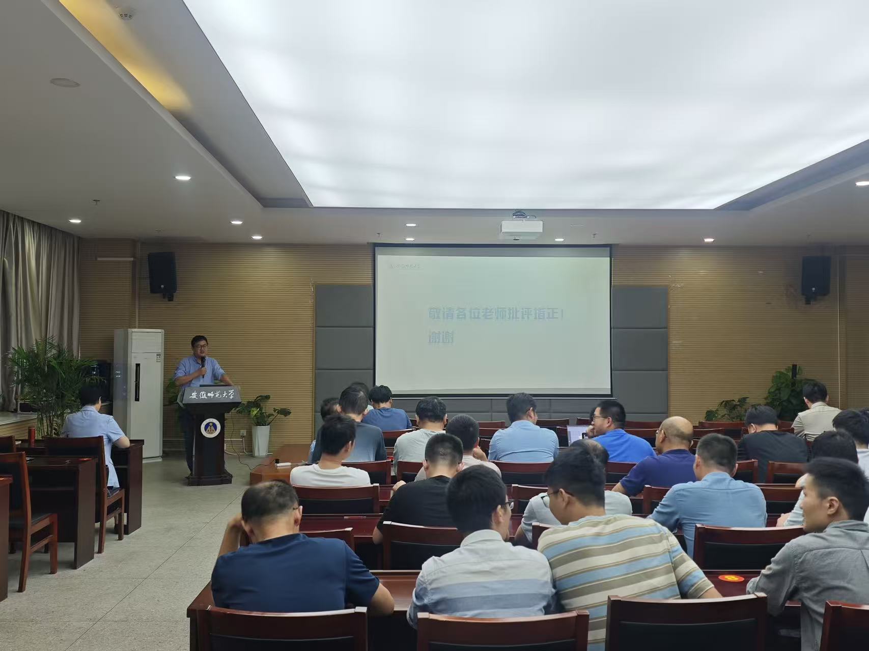 会议邀请刘小明和黄万霞两位教授分别面向全体教师分享了智慧课程建设经验和国家级一流课程申报经验等。