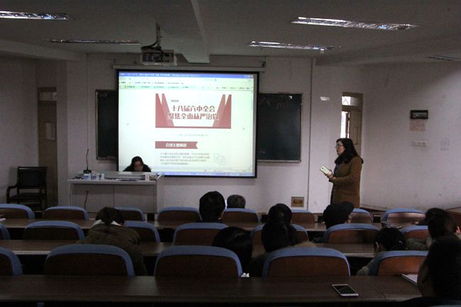 李娟首先带领大家通过图解的形式学习了党的十八届六中全会精神,对全面从严治党提出的新任务进行重点讲解;学习了安徽省第十次党代会精神,就创新发展进行重点阐述。接着,李娟布置了学校关于脱贫攻坚第三方监测评估工作。