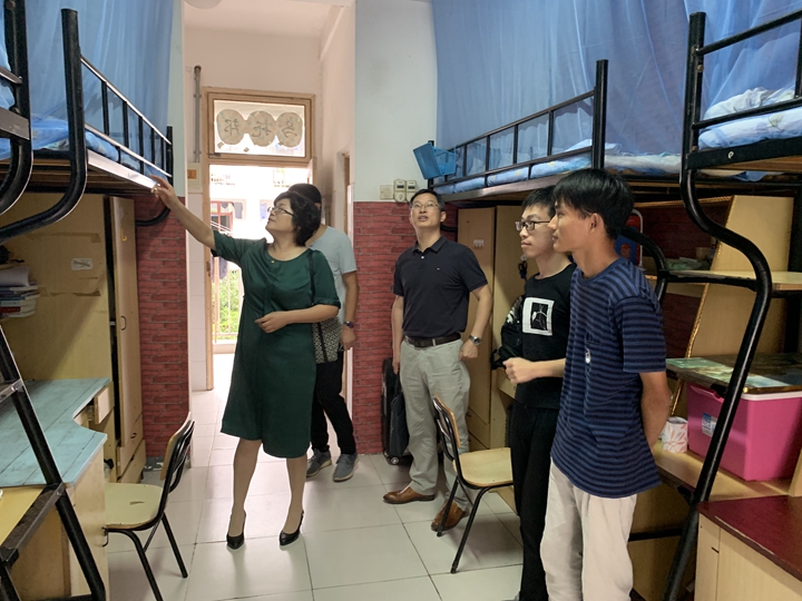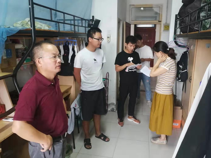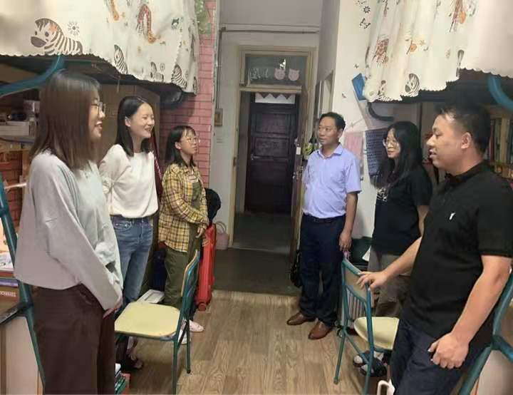 在家的领导班子成员、辅导员集中走访学生宿舍,看望返校学子,了解学生们的思想动态及生活情况,送去关怀与问候。