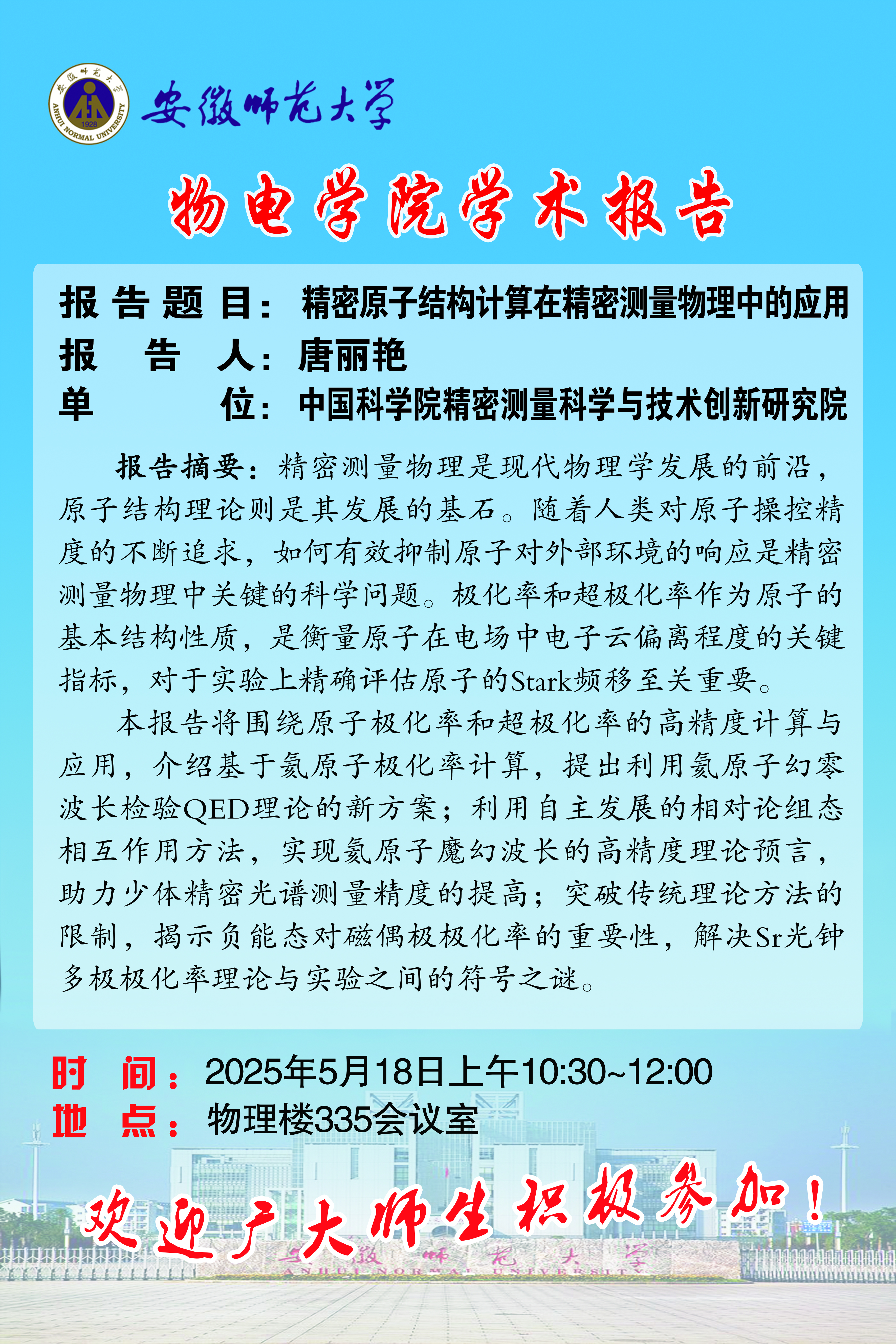 【色情网站 预告】物电讲坛2025年第25期:精密原子结构计算在精密测量物理中的应用
