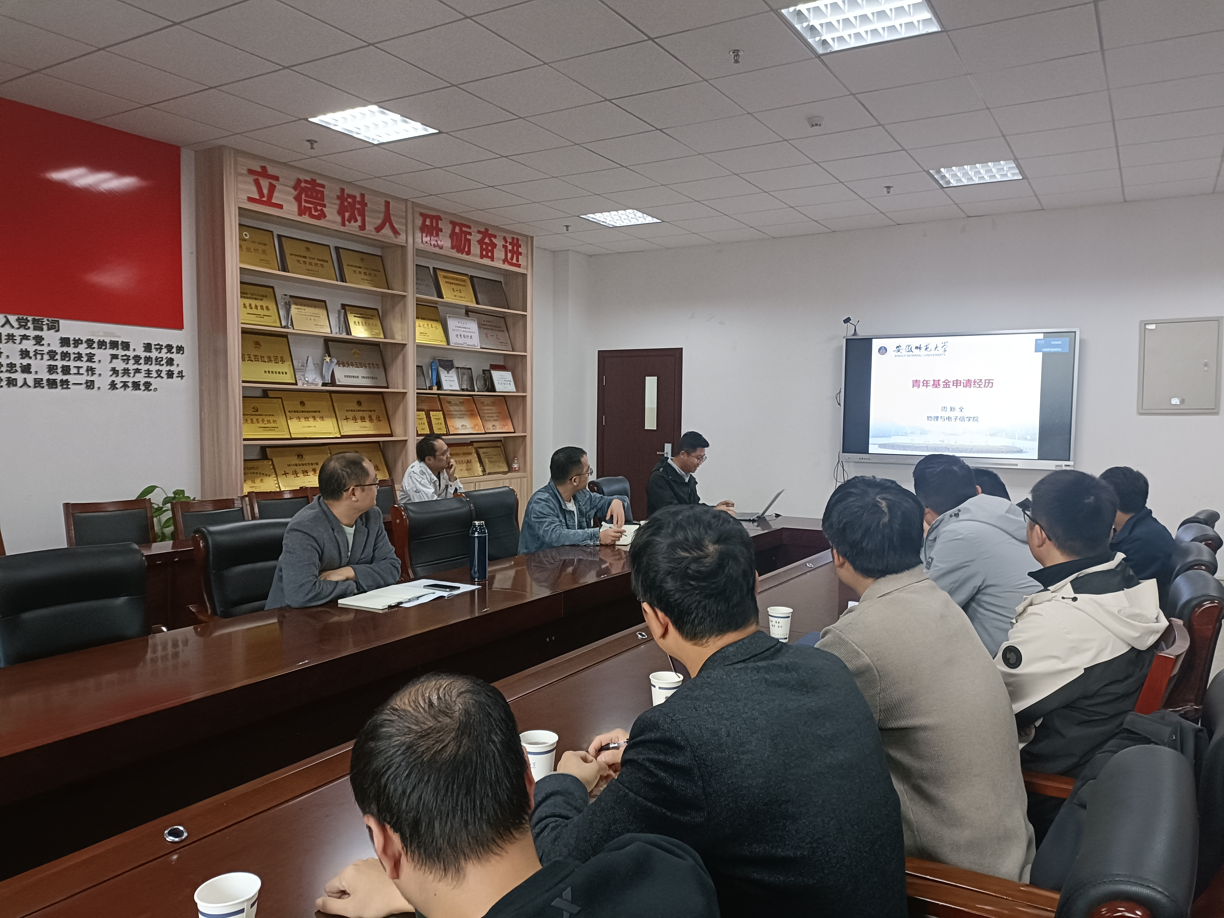 2025年度国家自然科学基金青年C类项目立项教师代表陶余强、周新全分别从项目的选题、申报书的撰写、申报书的打磨等方面细致地分享了项目申报的经验。2026年度国家自然科学基金青年C类项目申请人汇报了项目准备情况,就基金申报过程中存在的问题和疑惑在会上进行了深入交流和讨论。