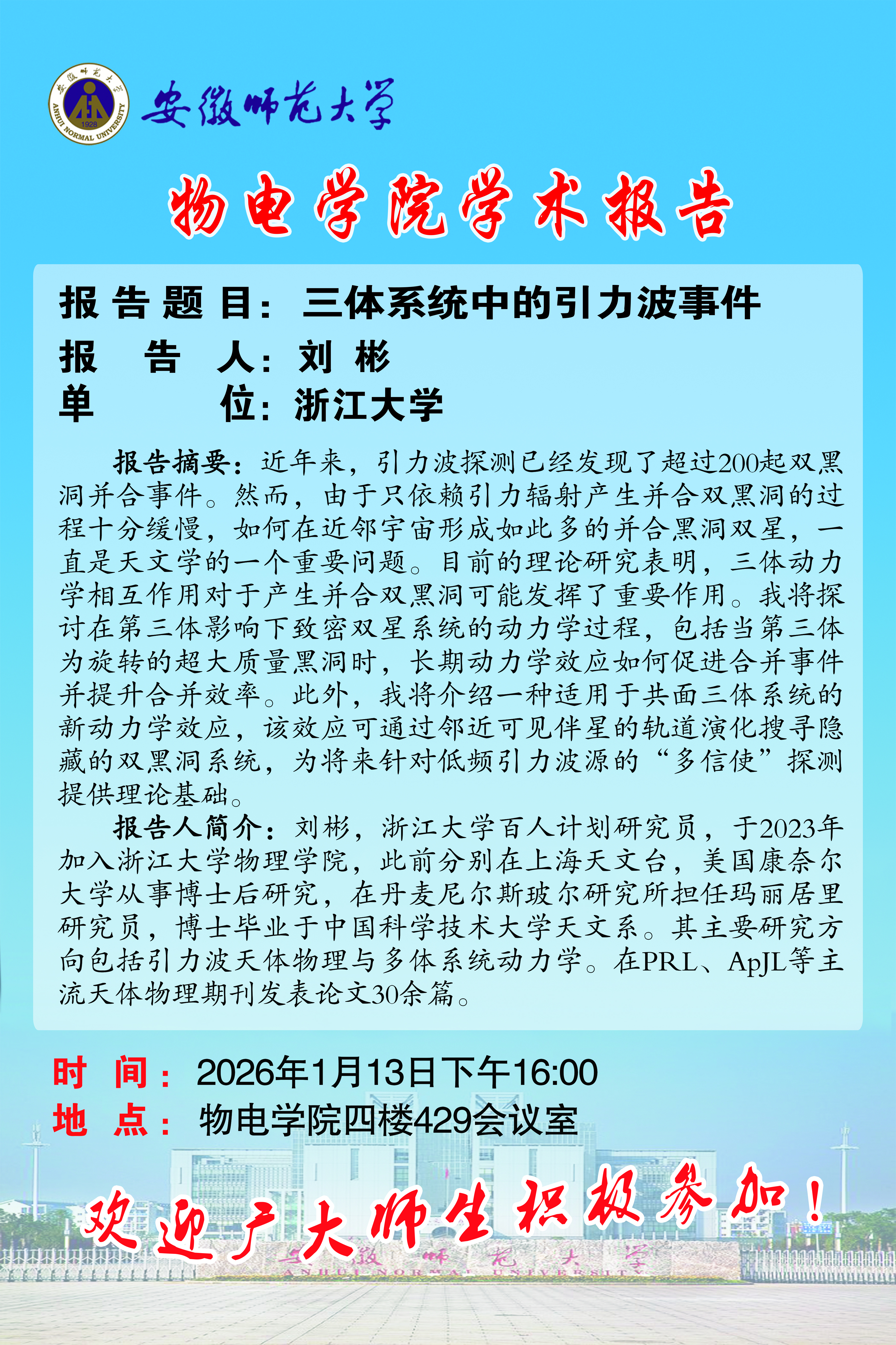 【色情网站 预告】物电讲坛2026年第3期:三体系统中的引力波事件
