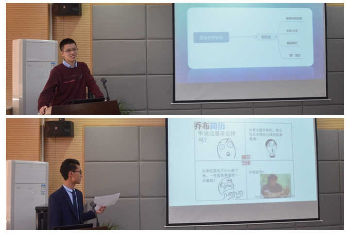 组织复赛遴选,共有十位参赛选手进入最后决赛环节。10位参赛选手以PPT形式依次进行汇报,并角逐出一、二、三等奖。17物理沈君宇分享了《给孩子讲量子力学》,简单的插画搭配,简化的物理过程,生动的语言描写,让量子力学客观活泼的展现在孩子眼前;18通信姜瑞杰汇报的《大话通信》中,介绍了从古至今的通信发展历程,展示了通信技术的变迁与利用,感悟到学习通信的重要性;18自动化李梦雨介绍的《流浪地球》将科幻的想象与现实的思考紧密结合,深入人心,引人深思;18光电张伟杰探索《三体》中的奥妙,观摩奇妙的物理现象,体验震撼的科幻构思。10位选手报告思路清晰,语言生动流畅,场下观众掌声不断。张杰在点评中强调理工科学生不仅要紧抓学习成绩,情商也十分重要,同学们需要不断历练,全方位提高个人综合能力。他在点评中说道:“书是一座快乐的富矿,勤读书,读好书,有利于促进成就事业,潜移默化中改变我们的人生。”,希望同学们多读书,读好书、会读书,养成终身学习的良好习惯。