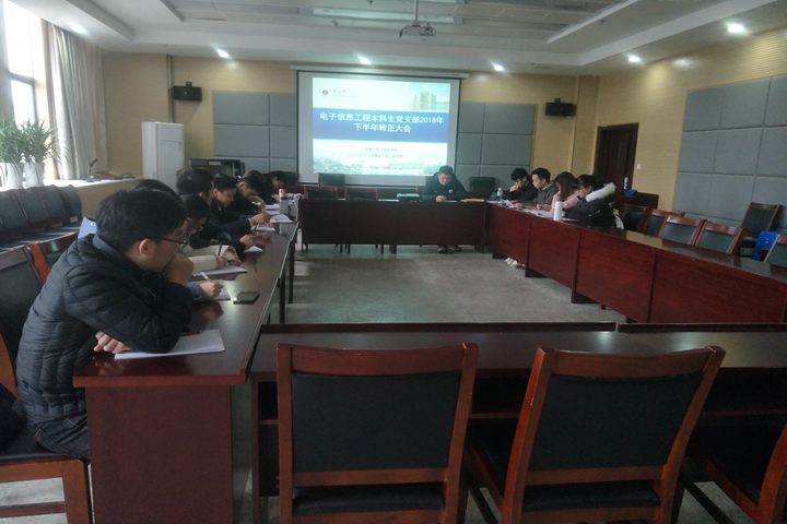电子信息工程本科生党支部在物理楼335会议室召开2018年下半年支部党员转正大会,全体支部党员参加了会议,会议由支部书记张杰老师主持。