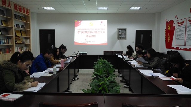 党员活动室召开全体党员大会,集体学习习近平总书记在庆祝改革开放40周年大会上的重要讲话精神,党支部书记刘冠琪主持会议。