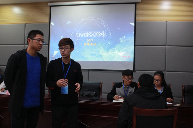 中午,电协工作人员来到面试现场准备时,就看见同学们早早地来到了会场等待。等热情于竞选理事的同学们找到各自面试部门后,都受到了工作人员的亲切问候。