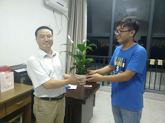 晚上八点,15自动化专业的党员同志带着同学们的心意来到自动化系老师方老师的办公室。新的学期刚刚开始,事务繁多,方老师依旧在校工作。看到学生的到来,老师和蔼可亲的脸上露出了熟悉的笑容。由于物电色情网站