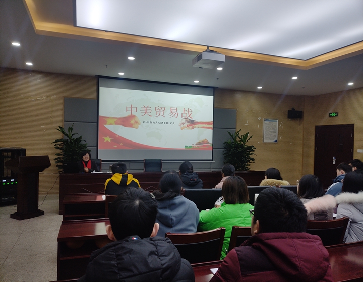 本次专题学习活动深刻分析了经济全球化背景下我国的经济发展前景以及中美贸易战中我国的应对策略,有助于学生掌握时政热点,有效激发了同学们的爱国热情,引导在校大学生珍惜时光、奋发图强。