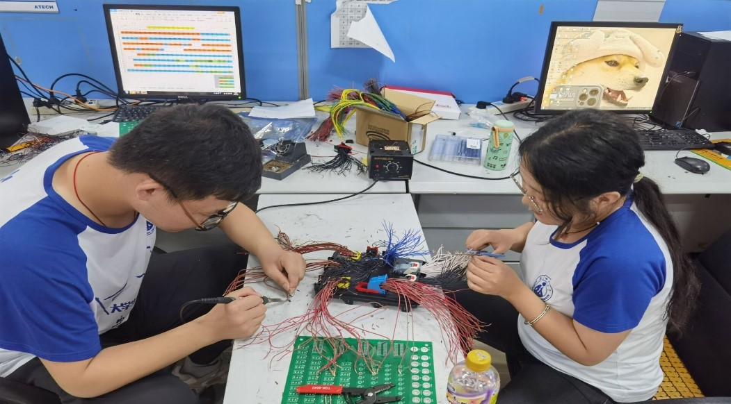 在实习中,队员被分配安排在不同部门,分组了解和尝试部门工作,体验不同职业岗位,找寻未来的职业定位。产品部的同学们学会了焊接实验不同测试盒的不同功能,生产技术部的同学们学会了接线技术,提升了动手能力,质保部与生产部的同学们面对着生产一线,观看了整个生产流程,也对流水线的工艺效率提升提出了自己的见解。旨在学以致用,相信在本次实习中队员们能收获技能满满!